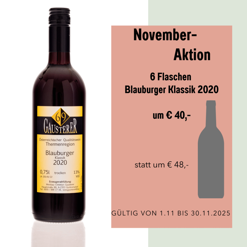 𝐖𝐄𝐈𝐍-𝐀𝐊𝐓𝐈𝐎𝐍 𝐢𝐦 𝐍𝐨𝐯𝐞𝐦𝐛𝐞𝐫 Unser Blauburger Klassik 2020 – trocken 𝟐-𝐟𝐚𝐜𝐡 𝐩𝐫ä𝐦𝐢𝐞𝐫𝐭! Gold Frankfurt International Trophy 2023 Silber AWC Vienna 2023 𝐉𝐞𝐭𝐳𝐭 𝐢𝐦 𝟔𝐞𝐫-𝐏𝐚𝐤𝐞𝐭 𝐮𝐦 𝐧𝐮𝐫 € 𝟒𝟎,- statt € 48,- Weg zum Wein + Ab Hof Verkauf jeden Samstag von 9 bis 13 Uhr (ausgenommen Feiertage) + Weinlieferung in der näheren Umgebung (Bezirk Mödling/Bezirk Baden)möglich […]